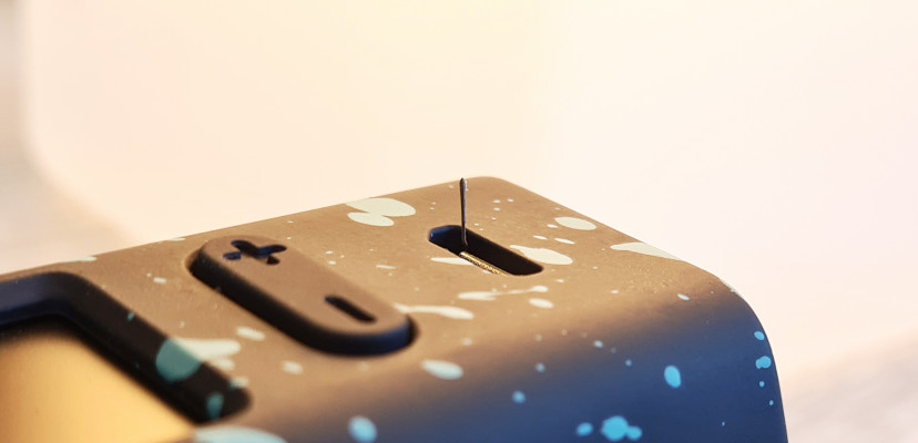 Краски нет, конкретно в этом случае сам пластик черный, а вот цветные капли это краска, она довольно толстая и ощущается как рельеф, прикольно. Также есть рельефный логотип, очень глубокий, тоже выглядит хорошо: