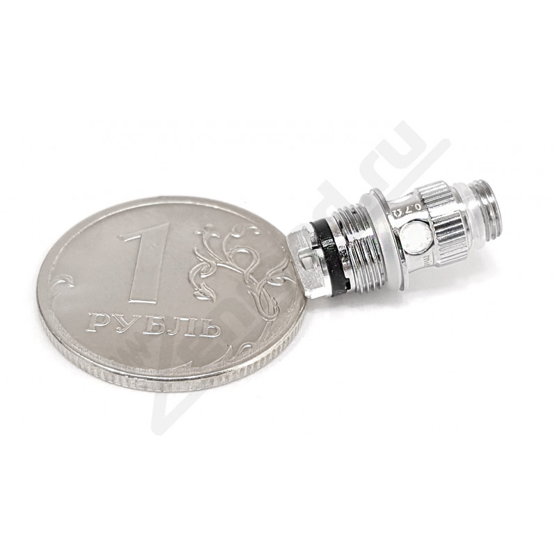 Кроме батарейки, на борту разместился AS Chip, который тут совсем не для красивого словца. Плата автоматически определяет тип испарителя: 0.7 Ом или 1.2 Ом. Первый работает на канталовой сетке, и используя его, мы можем отстроить мощность троекратным нажатием: 2.5\2.7\2.9 вольта (светодиод изменит цвет соответственно: красный, синий, зеленый). Второй испаритель на 1.2 Ом получил классическую спираль, но из нержавейки, и с ним Frenzy автоматически включит термоконтроль, при котором мощность будет отключаться, когда жидкость в баке подойдет к концу.